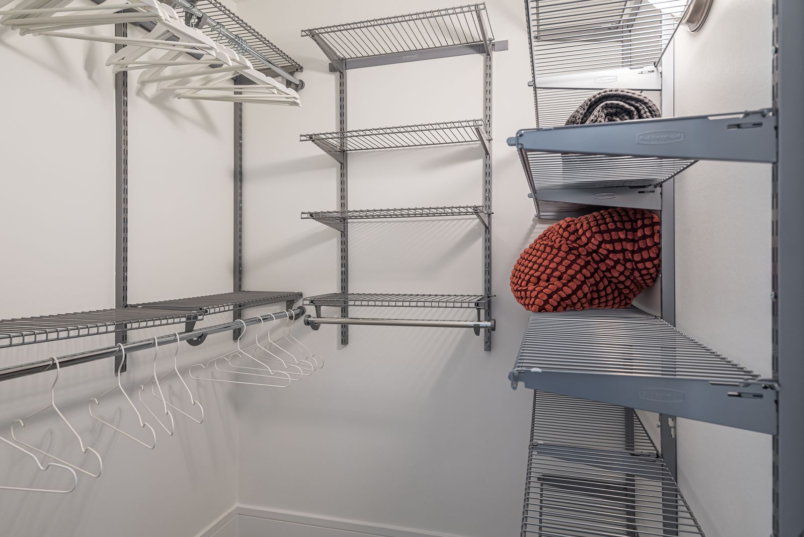 The spacious primary bedroom suite includes a walk-in closet with SS closet organizers including 14 lineal feet of hanging & 44 lineal feet of shelves! Walk into your spa bath & find a 40” vanity, 32” x 37” triple LED lit mirrored medicine cabinet, a soaking tub & brushed SS bathroom accessories.