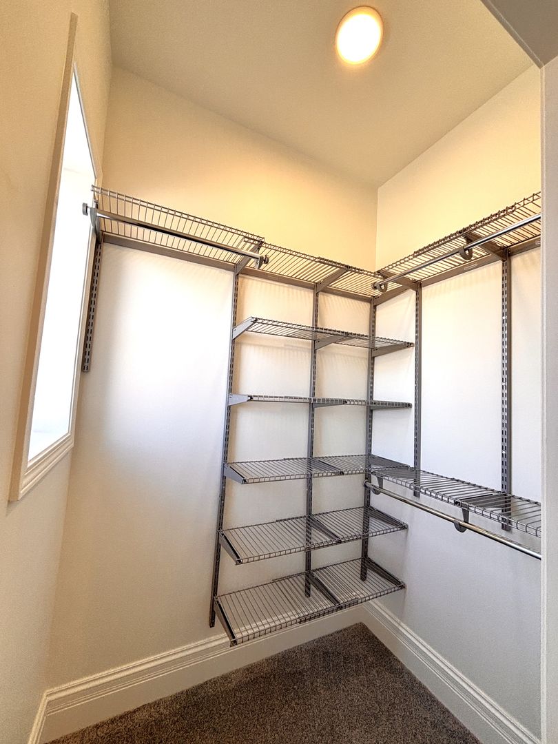 • SS double-hanging closet organizers with huge lineal feet of shelves in each closet