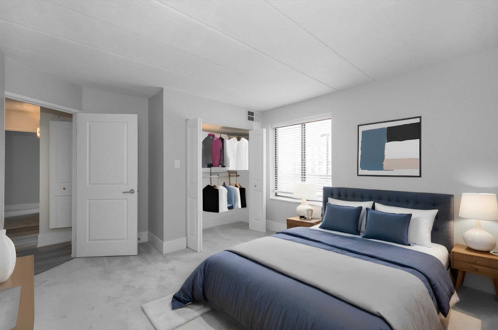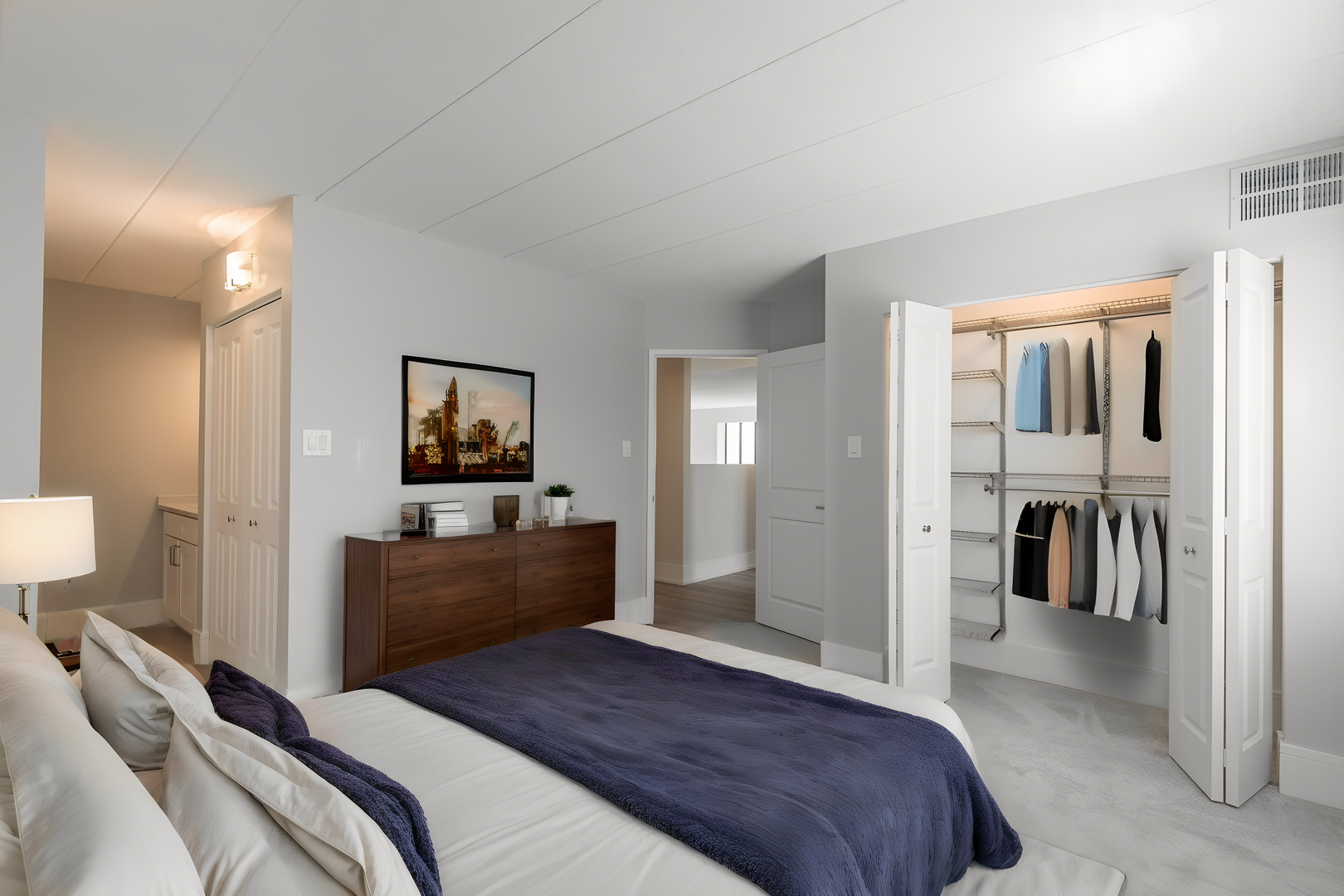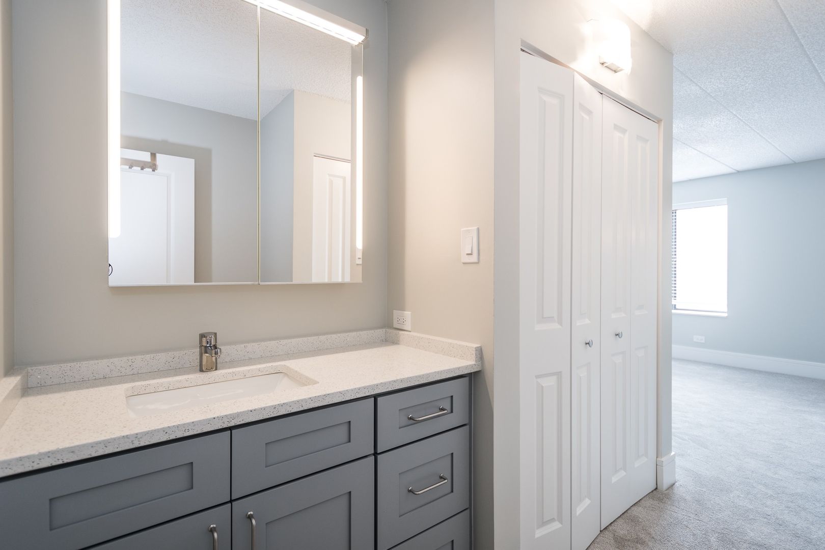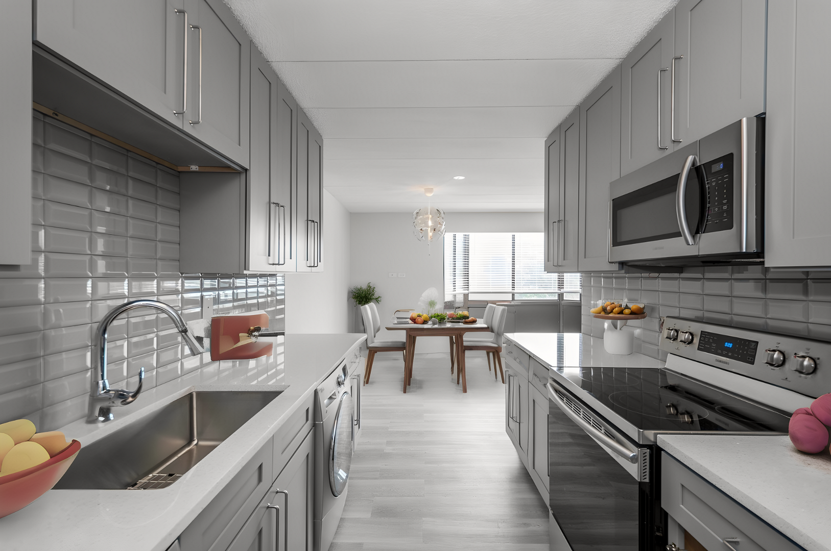 An absolutely breathtaking luxury three bed/two & one-half bath rental condo is available to call your next home! Welcome to the Estate Homes at Woodland Park by the Lake! We are set on 7 acres, with 3 acres of magical gardens in a gated community hugging the Chicago Lakefront! If you are picky & finicky, read on. Gourmet chefs will love our kitchen, equipped with slab quartz “Snowy Ibiza” countertops with glass tile backsplashes, Samsung appliances including a 5 burner stove, micro-hood & 3 door refrigerator with ice, a Bosch dishwasher, a deep & huge SS sink with faucet & sprayer, 42” super mod upper cabinets & a huge pantry! The spectacular open living room, family room & dining room have wide plank engineered grey wood floors, tall baseboards, Ivy Bronx wall sconces & a stunning dining chandelier. Every window from this corner condo has incredible & open views, including Lake Michigan, the Douglas Monument and the 35th Street Serpentine Floating Pedestrian Bridge. The enormous primary bedroom suite includes three closets, all with SS closet organizers and a ton of hanging and shelves! Walk into your spa bath & find a 40” vanity, 32” X 37” triple LED lit mirrored medicine cabinet, a soaking tub & brushed SS bathroom accessories. Want more? How about your own euro washer/dryer, Decora switches & dimmers, strategically placed electric & cable for flat screen televisions, 2” white horizontal blinds & polished SS door handles (not knobs)?