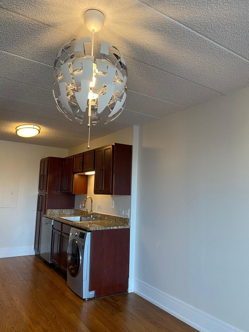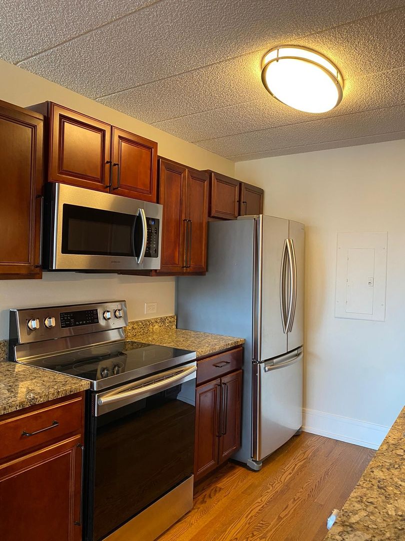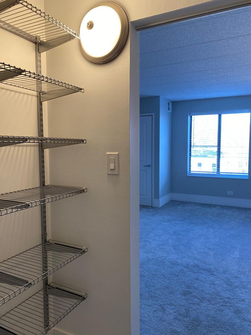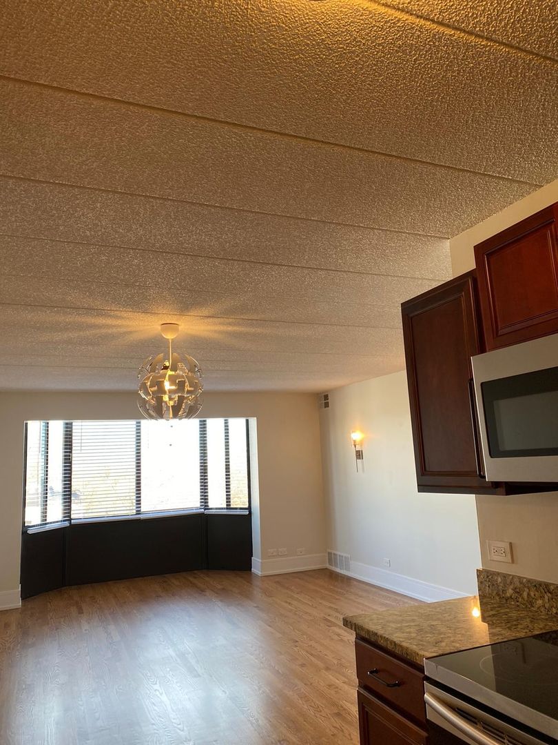An absolutely breathtaking top floor enormous one bed rental condo that is the size of most two bedroom apartments, is now available to call your next home! Welcome to the Estate Homes at Woodland Park by the Lake! We are set on 7 acres, with 3 acres of magical gardens in a gated community hugging the Chicago Lakefront! If you are picky & finicky, read on. Gourmet chefs will love our kitchen, equipped with slab quartz “Snowy Ibiza” countertops with glass tile backsplashes, Samsung appliances including a 5 burner stove, micro-hood & 3 door refrigerator with ice, a Bosch dishwasher, a deep & huge SS sink with faucet & sprayer, 42” super mod upper cabinets & a pantry! The open living room & dining room have wide plank engineered grey wood floors, tall baseboards, Ivy Bronx wall sconces & a stunning dining chandelier topped with incredible views of Woodland Park botanic gardens, the Douglas Monument & the 35th Street Serpentine Floating Pedestrian Bridge - from every window! The mammoth sized bedroom suite includes a gigantic walk-in closet with SS closet organizers loaded with 17 lineal feet of hanging (yes, for real) & 48 lineal feet of shelves! Walk into your spa bath & find a massive 60” vanity, 32” X 37” triple LED lit mirrored medicine cabinet, a soaking tub & brushed SS bathroom accessories. Want more? How about your own euro washer/dryer, Decora switches & dimmers, strategically placed electric & cable for flat screen televisions, 2” white horizontal blinds & polished SS door handles (not knobs).