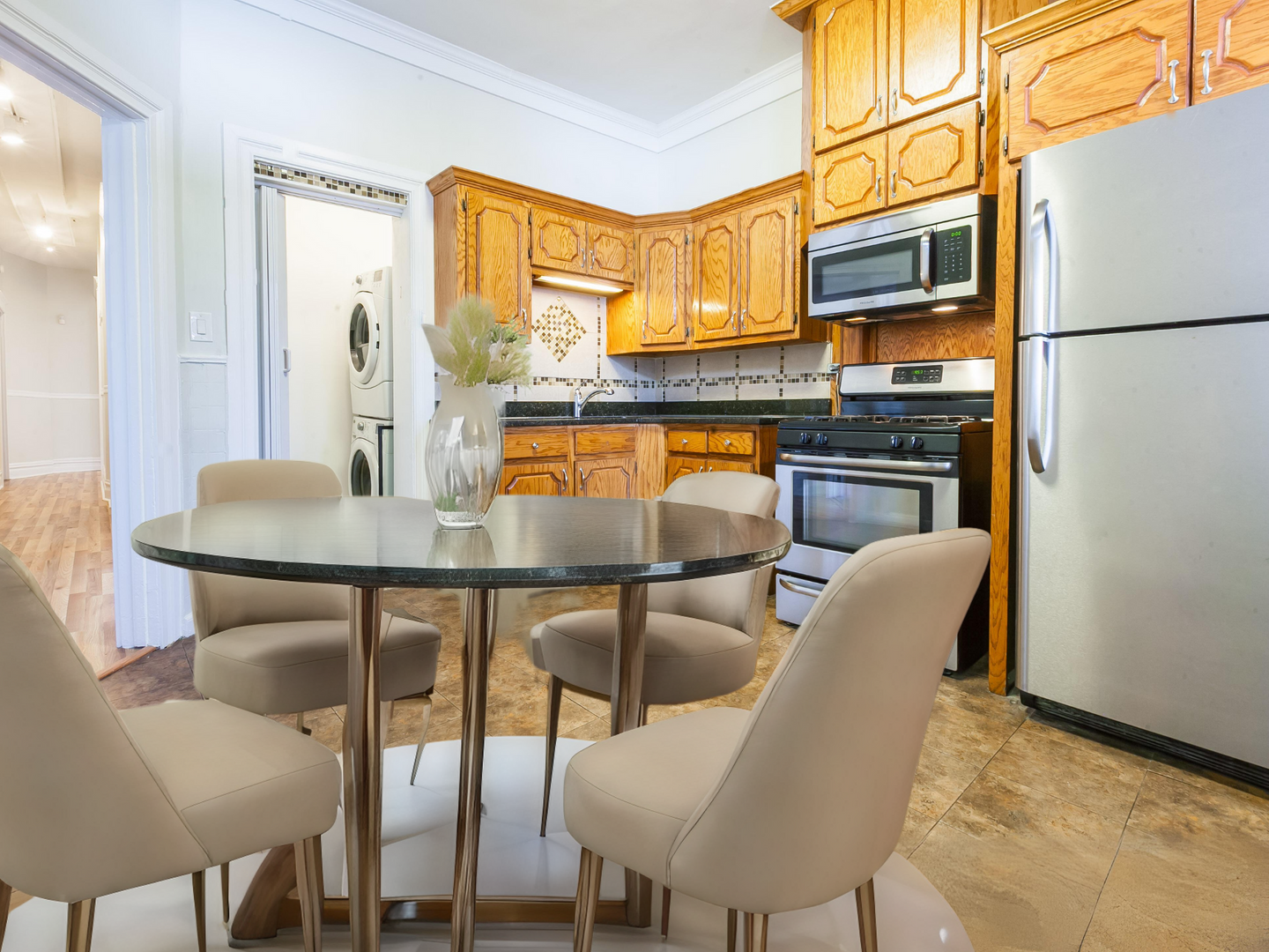 AVAILABLE NOVEMBER 11th: This sun soaked glorious, huge full floor apartment in an intimate four unit Greystone edifice, east of King Drive could be your new home! Hardwood floors & traditional moldings contrast with the 21st Century modern living in this sweet, boutique property. Check out our contemporary light fixtures with Decora switches & dimmers, huge closets with SS organizers & a full size euro washer & dryer. Expect a kitchen with the modern acruitements including SS appliances, a 5 burner stove, a dishwasher µo-hood, Uba Tuba slab granite countertops, disposal & under mount SS sinks. Add a separate living room flooded with south light, a formal dining room & a HUGE private terrace directly off the kitchen. The enormous primary bedroom & two other bedrooms make this a family home. Other features include strategically placed cable & electric & a large storage closet outside of your home.